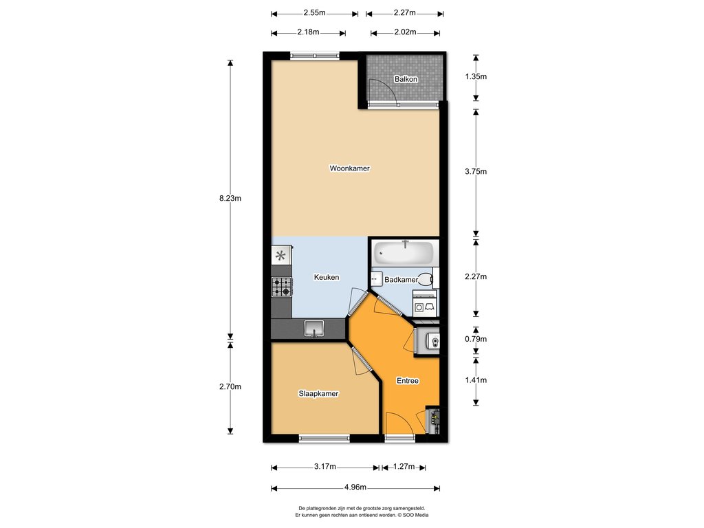 – Het appartement heeft 1 ruime slaapkamer, gelegen aan de galerijzijde.