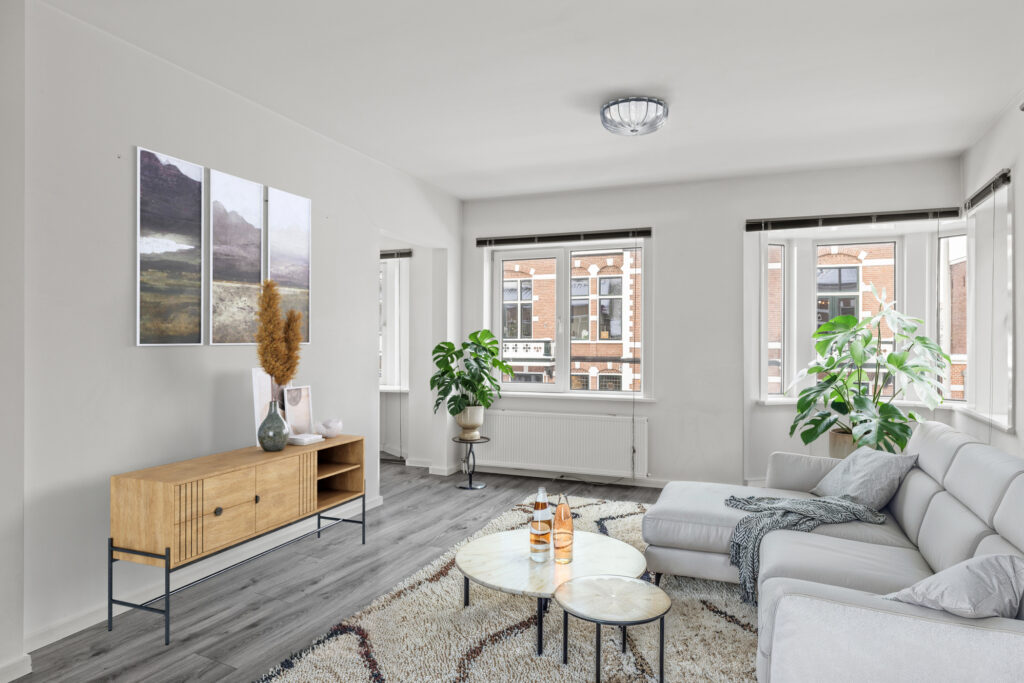 Wanneer je binnenstapt in de woonkamer, vallen direct de vele ramen op! Ze geven het appartement haar stadse karakter. Aan de voorzijde creëer je een gezellige zithoek. De plek om met vrienden te borrelen of te genieten van een goed boek op de bank. Centraal in het appartement vind je de (open) keuken, die beschikt over een gaskookplaat, combi-oven, koelkast met vriesvak en een vaatwasser. Kortom, alle benodigdheden voor het koken van een heerlijke maaltijd. Naast de keuken is ruimte voor een knusse eethoek.