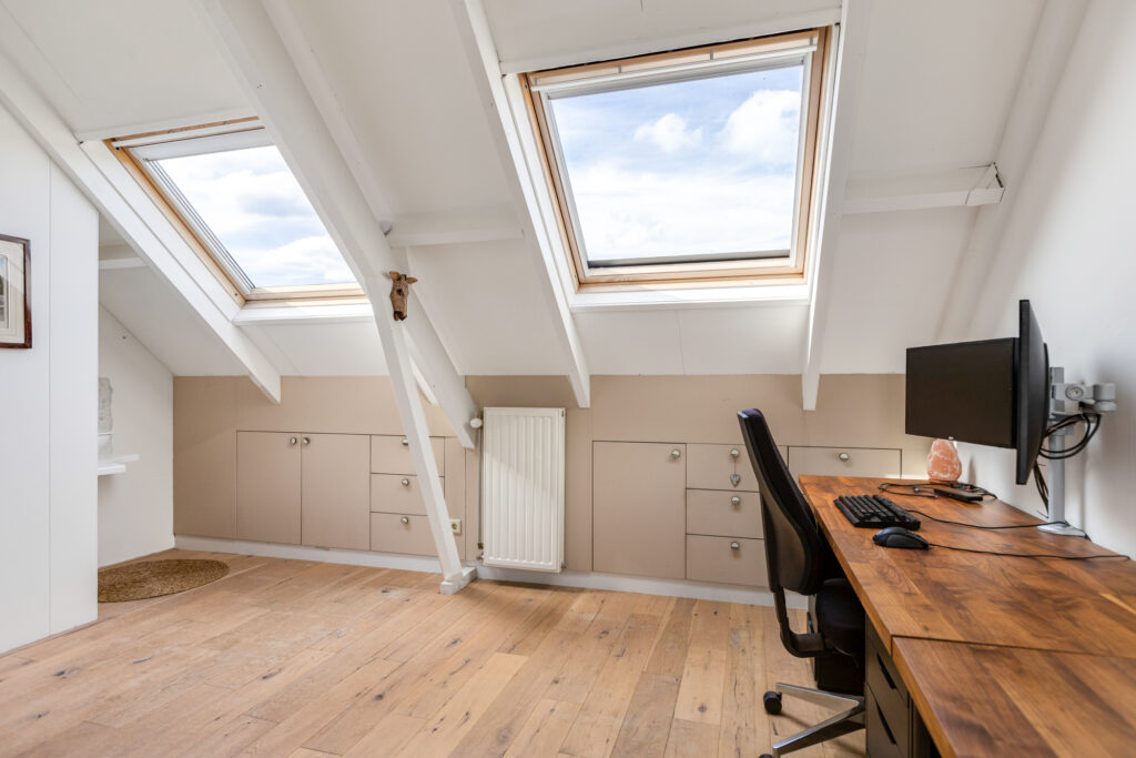 De zolderverdieping is een echte plus! Grote dakramen aan de voorzijde en een dakkapel aan de achterzijde zorgen voor volop daglicht, waardoor het eenvoudig mogelijk is twee kamers te realiseren. Een extra slaapkamer, hobbyruimte of home gym? Het kan hier allemaal! Op de overloop is ruimte voor de wasmachine en droger.