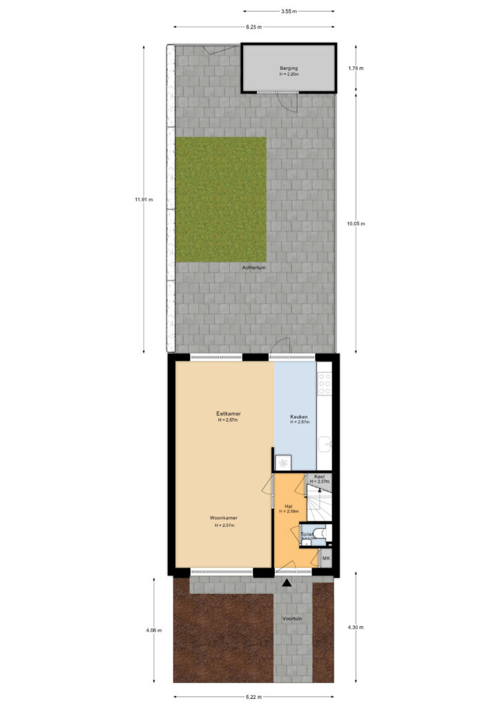 Achtertuin 74 m2 (11,91 meter diep en 6,25 meter breed)