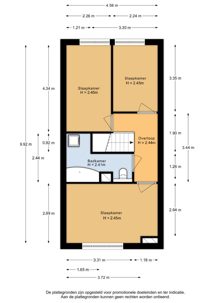 Eerste verdieping – drie slaapkamers en een frisse badkamer