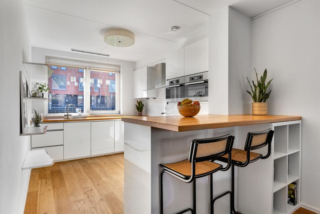 De lekkerste maaltijden kook je in de keuken, die zich aan de voorzijde van de woning bevindt. Met een grote hoekopstelling biedt hij alle ruimte die je als kookliefhebber nodig hebt. De keuken (2010) beschikt over een keramische kookplaat, oven, combimagnetron, koelkast, vriezer, vaatwasser en een hoog werkblad voor optimaal werkplezier. Terwijl jij hier uitgebreid staat te koken, spelen de kids aan tafel een spelletje. In de living is namelijk ruimte voor een grote eethoek om samen uren te tafelen. Ook creëer je hier een sfeervolle zithoek. De plek om na een drukke werkdag te ontspannen op de bank of met gasten gezellig te borrelen. Vanuit de living biedt de schuifpui toegang tot de achtertuin.