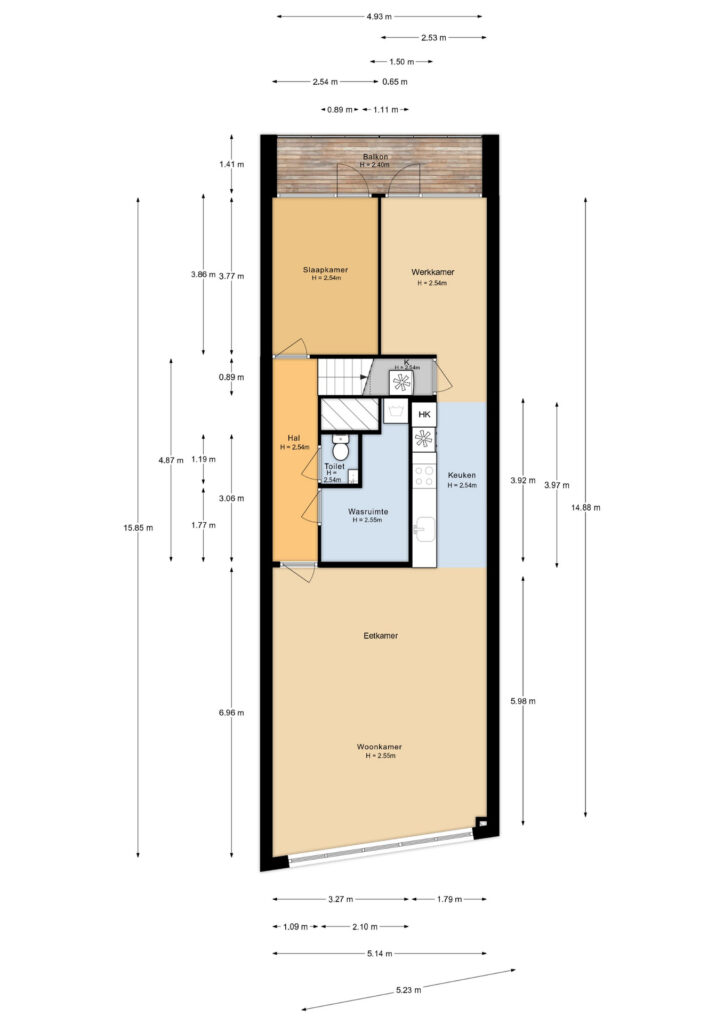 Voor de thuiswerkers is de kamer achter de keuken de ideale plek voor een thuiswerkkantoor. Ook een tweede (slaap)kamer vind je op deze verdieping, aan de achterzijde van het appartement. Beide kamers bieden toegang tot het balkon, waar je ’s ochtends al in de eerste zon van jouw kopje koffie geniet.