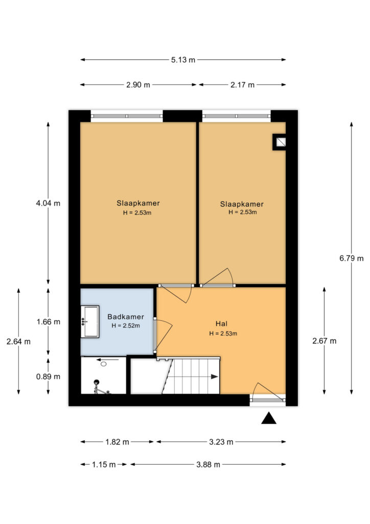 De tweede woonlaag biedt twee slaapkamers, de badkamer en een ruime hal. De twee slaapkamers vind je beide aan de achterzijde van het appartement. Vanuit de slaapkamers loop je ’s ochtends direct de badkamer in om jouw dag te starten met een frisse douche. De badkamer is geheel betegeld, eigentijds ingericht en biedt naast een inloopdouche een wastafelmeubel en designradiator.