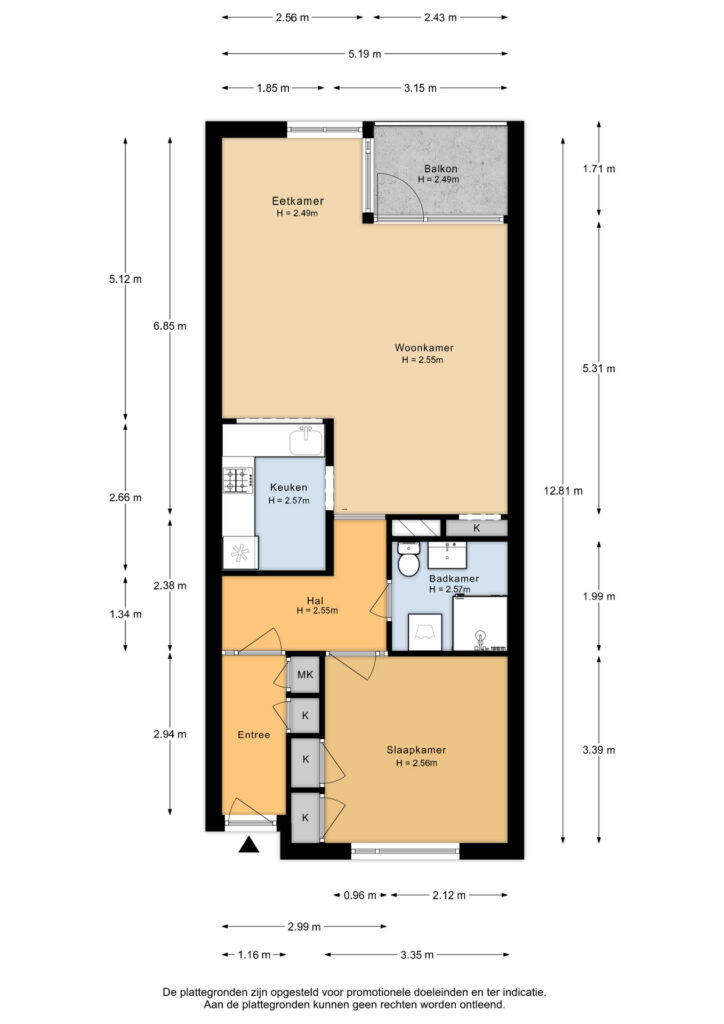 • Woonoppervlak: licht en goed ingedeeld 2-kamerappartement
