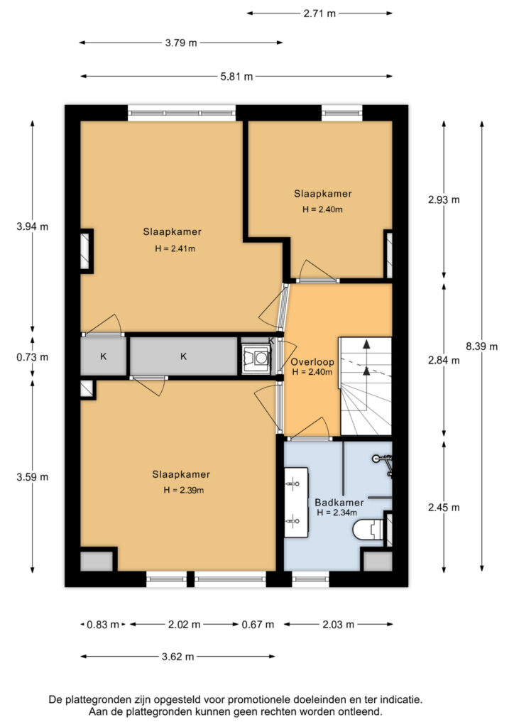 Via de vaste trap bereik je de eerste verdieping. Hier zijn drie slaapkamers te vinden. De grootste slaapkamer ligt aan de voorzijde, blijft heerlijk koel en beschikt over een ruime inbouwkast. Ook de slaapkamer aan de achterzijde is royaal en voorzien van een handige inbouwkast. De derde kamer is ideaal als kinderkamer of werkkamer, met ruimte voor bijvoorbeeld een hoogslaper of bureau. De badkamer is praktisch ingericht met een inloopdouche, toilet, dubbele wastafel en designradiator. Dankzij het raam aan de voorzijde kun je hier altijd goed ventileren. Op de overloop bevindt zich nog een inbouwkast met aansluitingen voor wasmachine en droger – slim weggewerkt en heel praktisch.