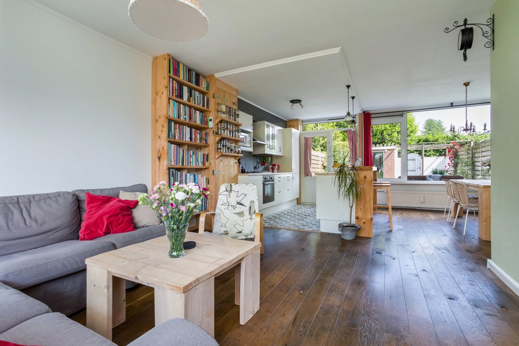 – De living is voorzien van een keurige vloer- en wandafwerking en biedt voldoende plek voor een ruime zithoek aan de voorzijde en een eetgedeelte, met ruime berg-/voorraadkast aan de achterzijde.