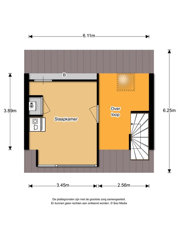 – Slaapkamer 3 is (eveneens) gelegen aan de achterzijde.