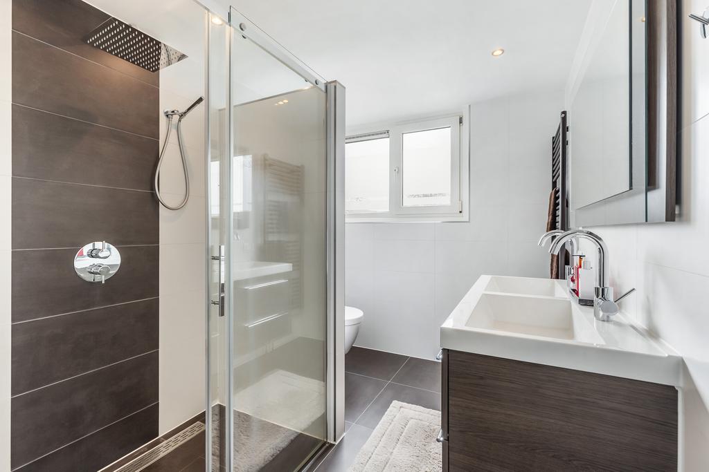 Ook de badkamer vind je aan de achterzijde. Dankzij de dakkapel is dit ook een eyecatcher van de woning. Met een XL-inloopdouche kun jij je geluk niet op. Een modern wastafelmeubel, verlichtte spiegel en een (2e) toilet, beschikt deze badkamer over alle gemakken om te verfrissen. Door de neutrale tinten kan deze badkamer nog jaren mee.