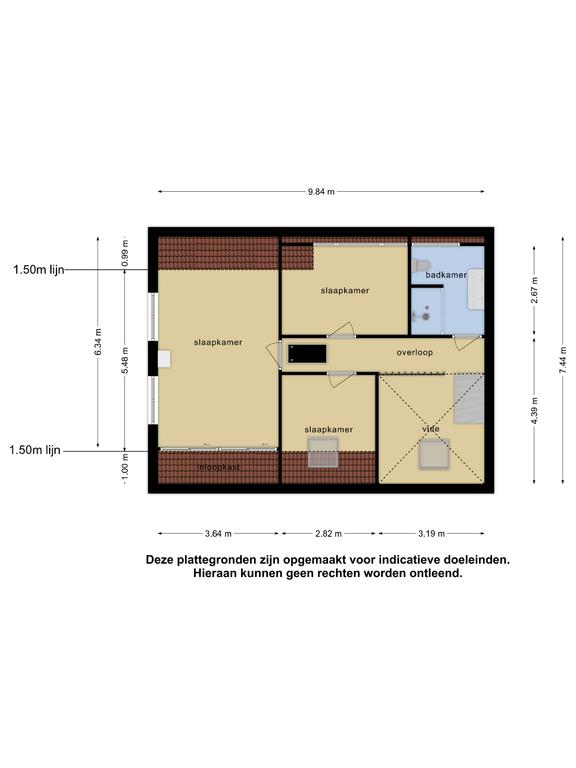 De woning beschikt op de eerste verdieping over drie slaapkamers. Zo vind je over de volledige lengte van de woning de master bedroom. Deze slaapkamer biedt volop mogelijkheden, denk bijvoorbeeld aan een luxe boxspring en droom van een inloopkast. De sfeervolle houten balken op het plafond maken het helemaal af. Een tweede slaapkamer vind je aan de voorzijde van de woning en dankzij een dakkapel is aan de achterzijde ook een derde slaapkamer gerealiseerd. Geen drie slaapkamers nodig? Gebruik de kamer dan als bijvoorbeeld werk- of logeerkamer.