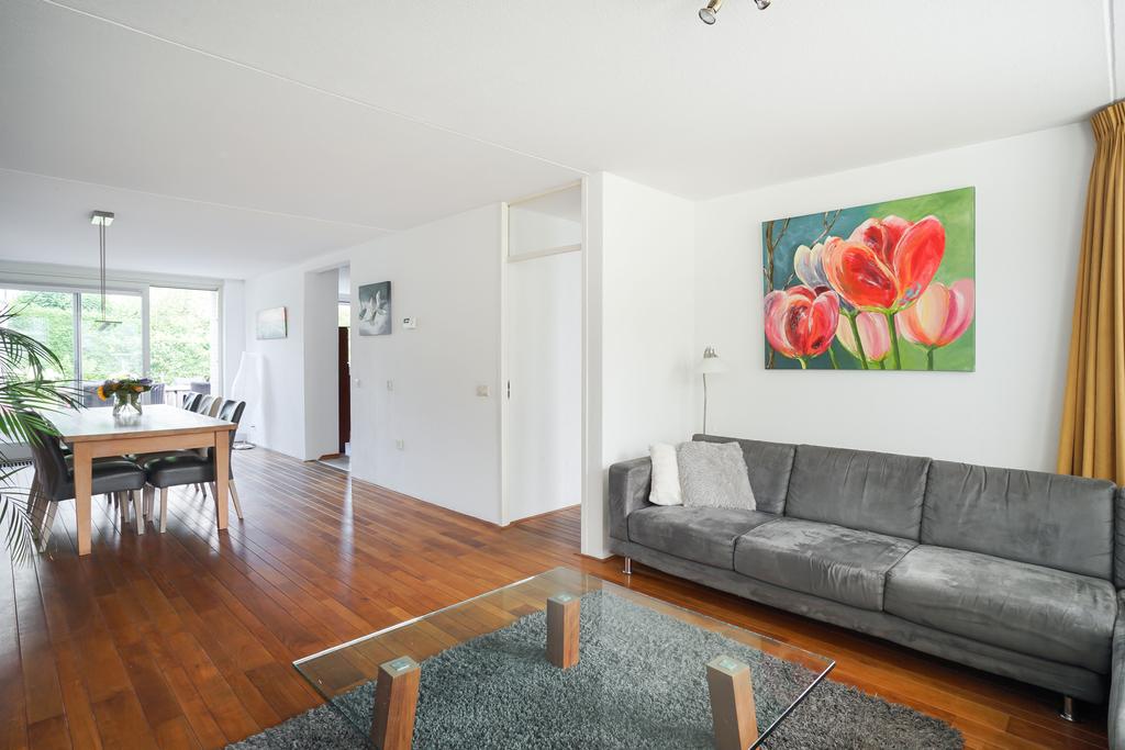 De woonkamer heeft een gezellige zithoek aan de voorzijde, en er is veel daglicht. Aan de achterzijde is een eetgedeelte met een grote schuifpui naar de achtertuin. Ideaal, kun je de hapjes en drankjes makkelijk uitserveren op het buitenterras.