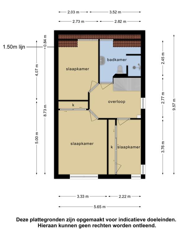 Een ruime overloop biedt op de eerste verdieping toegang tot de drie slaapkamers. De hoofdslaapkamer vind je aan de voorzijde van de woning. Op deze slaapkamer is een airco geïnstalleerd, waardoor je hier het hele jaar heerlijk kunt slapen! Ook is er aan de voorzijde van de woning een tweede, compacte kamer. Beide kamers beschikken over grote inbouwkasten, waardoor losse kasten hier (vrijwel) niet nodig zijn. De derde slaapkamer vind je aan de achterzijde van de woning. Dankzij de dakkapel heeft deze kamer genoeg mogelijkheden, om de kamer in te richten als bijvoorbeeld kinderkamer of logeerkamer.