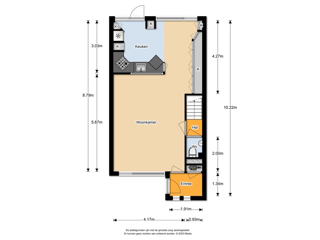 – Tussenhal met trapopgang naar de 1e verdieping en toilet, voorzien van closet en fonteintje.