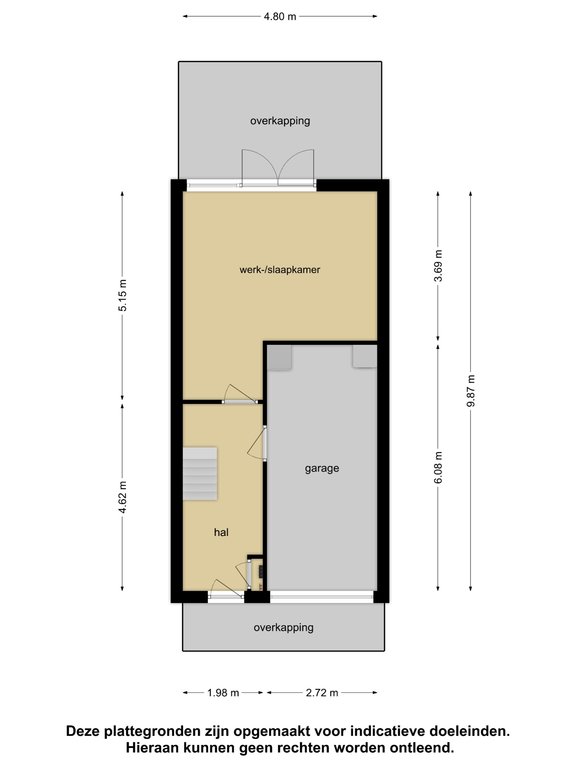 Via de voortuin met (eigen) parkeerplaats betreden we de woning en is de indeling als volgt: