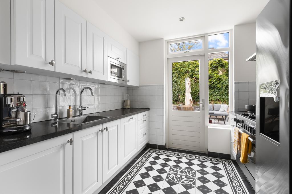 Apart van de woonkamer, vind je aan de achterzijde van de woning de keuken. Een zes-pits gasfornuis met grote oven maakt dat jij hier iedere avond weer de lekkerste maaltijden op tafel zet. De keuken is vernieuwd in 2018 en beschikt naast een gasfornuis over een magnetron en vaatwasser. De dubbele opstelling maakt dat je hier gezellig samen kunt koken en bakken. Ook vanuit de keuken heb je direct toegang tot de tuin.