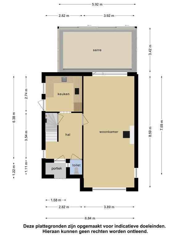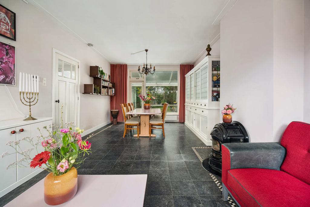 Naast de hal en de keuken vind je de woonkamer over de hele lengte van het huis. Met een groot raam aan de voorzijde en een deur aan de achterzijde is het met recht een doorzonkamer te noemen. Hier creëer je een gezellige eethoek om samen te tafelen en een knusse zithoek, om te borrelen of na een lange werkdag te ontspannen. Vanuit de woonkamer heb je toegang tot de serre, waar je al vroeg in het voorjaar lekker van buiten kunt genieten.