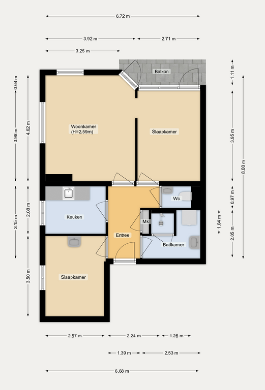 Het appartement beschikt over twee slaapkamers, waarvan één slaapkamer grenst aan het balkon. Met je éérste kopje koffie ’s ochtends wakker worden op het balkon? Dan is dit de ideale master bedroom. De tweede slaapkamer, grenzend aan de keuken kan ook goed als bijvoorbeeld werkkamer, logeerkamer op bergruimte gebruikt worden.