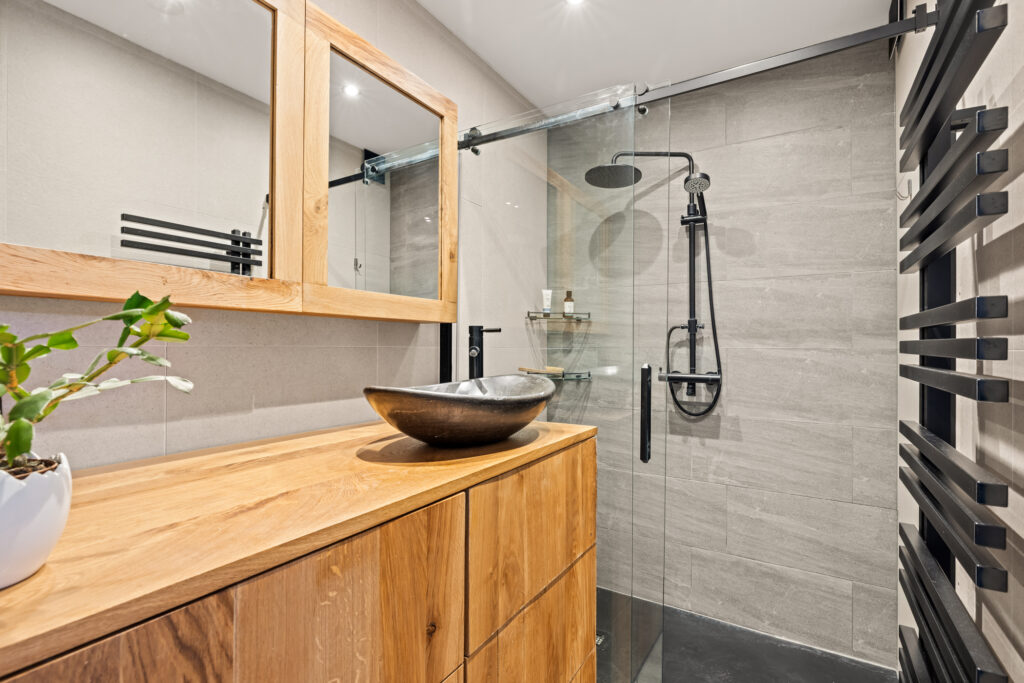 De slaapkamer is gelegen aan de achterzijde van het appartement en biedt genoeg ruimte voor een tweepersoonsbed en grote kledingkast. Op het balkon geniet je voordat je je bed in stapt, nog even van de laatste avondzon. ’s Ochtends stap je vanuit de slaapkamer zo de badkamer in. De badkamer is in 2023 volledig vernieuwd en strak afgewerkt met een inloopdouche, modern wastafelmeubel en een handige plek voor je wasmachine. Dankzij elektrische vloerverwarming is het hier altijd comfortabel warm. Naast de badkamer vind je ook het toilet.