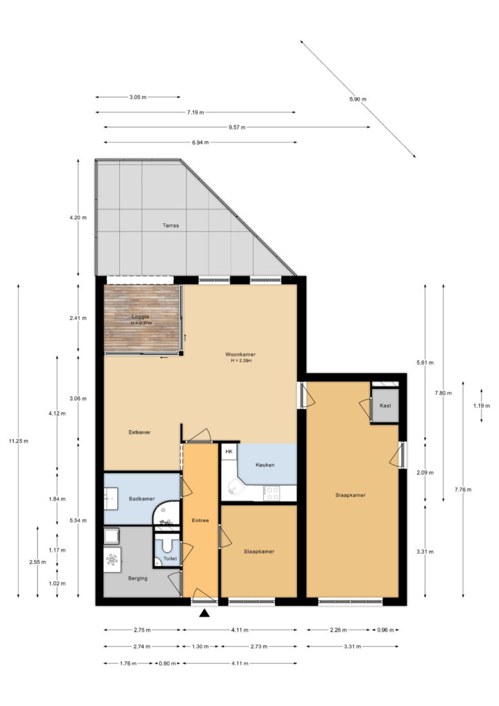 Het appartement biedt twee slaapkamers. De eerste slaapkamer bevindt zich direct bij de ingang van de woning. Gebruik deze slaapkamer als bijvoorbeeld logeerkamer of thuiswerkplek. Via de keuken heb je toegang tot de tweede slaapkamer, de masterbedroom. Uniek aan deze kamer is de aparte voordeur naar buiten, waardoor deze kamer ook te gebruiken is als praktijkruimte. Zo kun je klanten aan huis ontvangen en toch werk en privé gescheiden houden. Het is eenvoudig mogelijk in deze kamer een (2e) toilet te plaatsen. Heb je een derde slaapkamer nodig? In de oorspronkelijke indeling werd de huidige eetkamer als slaapkamer gebruikt.