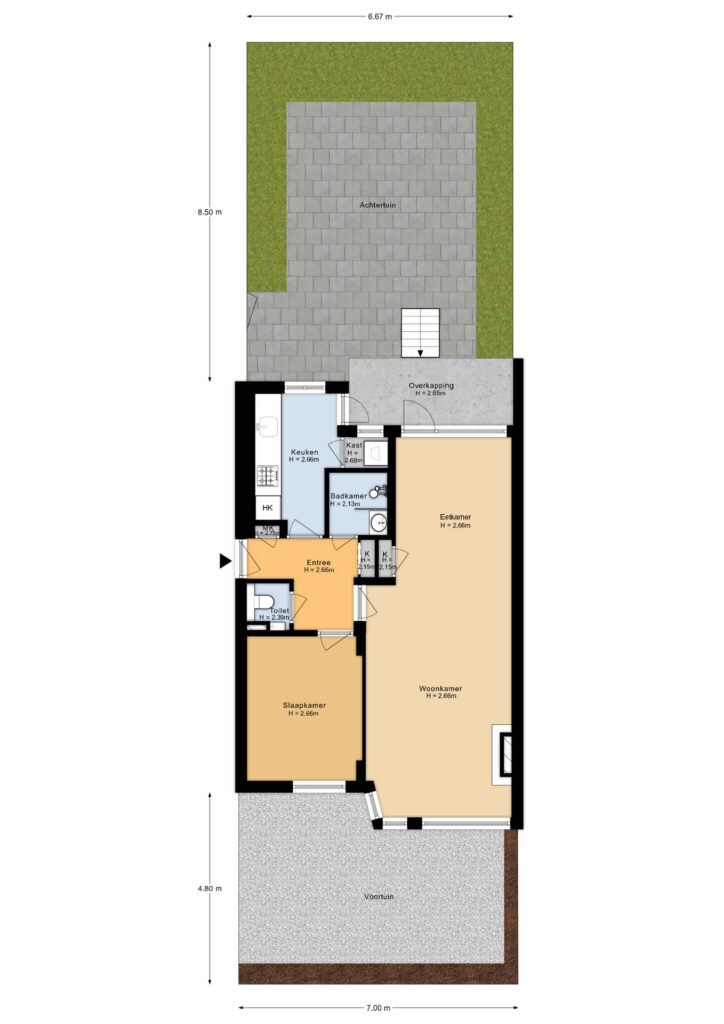 Achtertuin 57 m2 (8,50 meter diep en 6,67 meter breed)