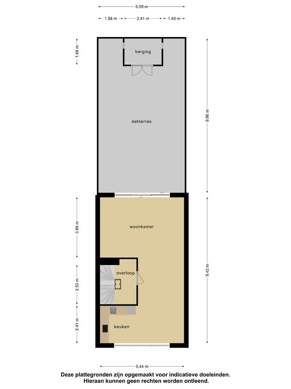 Zonneterras 56 m2 (9,96 meter diep en 5,59 meter breed)