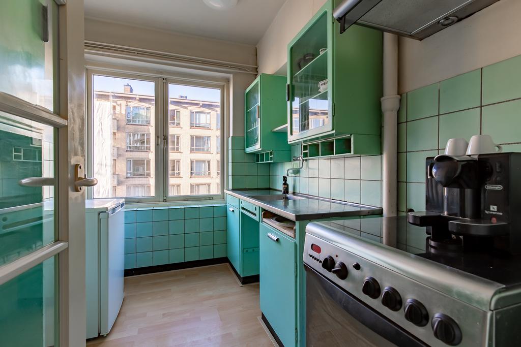 Je komt binnen in de hal, van waaruit je toegang hebt tot alle ruimtes van het appartement. Zo vind je aan je linkerzijde de keuken. Een compacte, maar originele Bruynzeel keuken. Geef deze vintage keuken een moderne upgrade of maak plaats voor een keuken die past bij jouw woonstijl. Denk bijvoorbeeld aan een hoekkeuken met inductiekookplaat en veel opbergruimte.