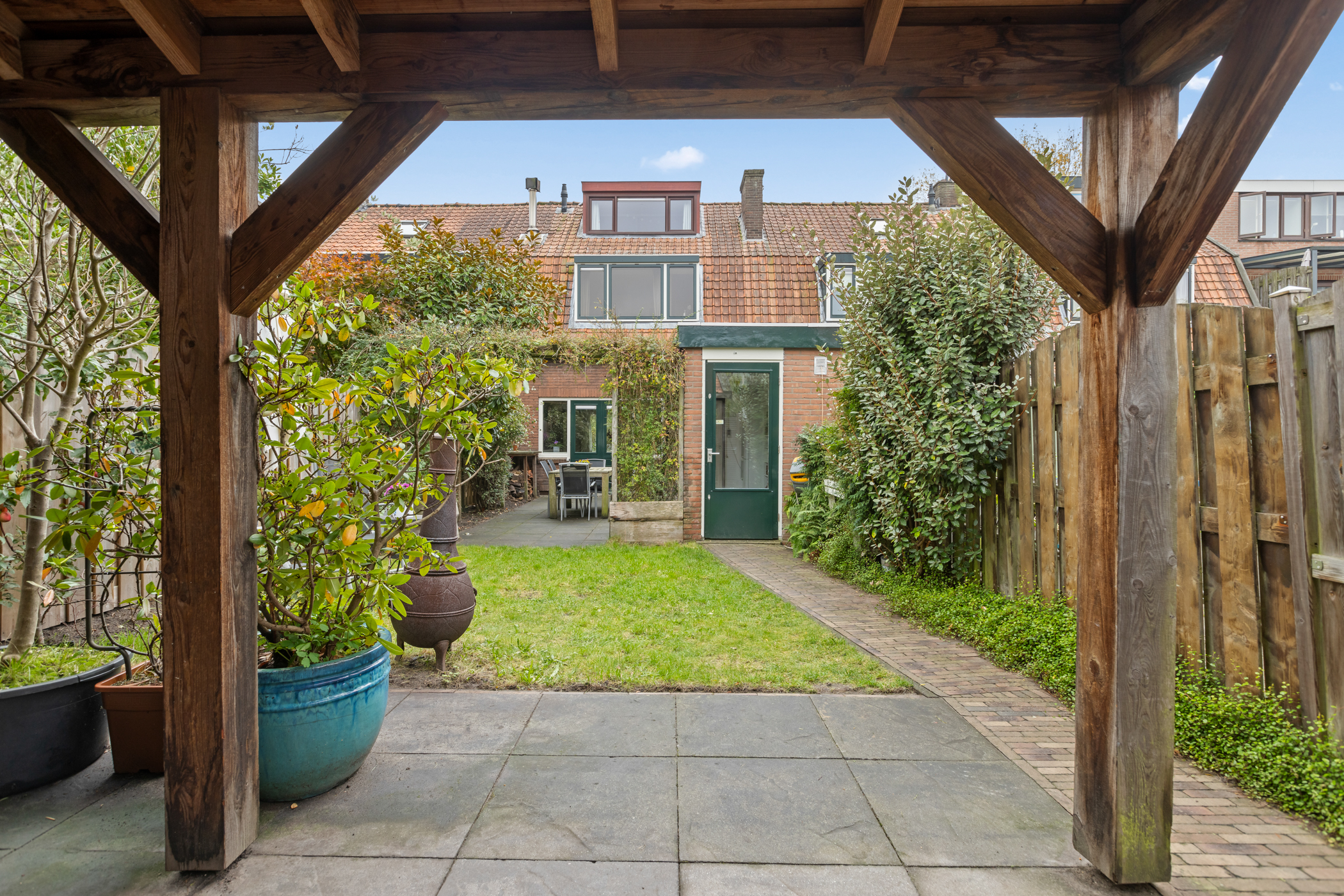 Bij het zien van de tuin ben je verkocht! De tuin is ruim 17 meter diep en grenzend aan de woning vind je een ruim terras. Hier nodig je de hele familie uit voor een zomerse barbecue. Ook voor de kids is er voldoende ruimte om lekker buiten te kunnen spelen. Achterin de tuin staat een houten tuinhuis, die door de huidige bewoner volledig is geïsoleerd. Wanneer je op zoek bent naar een plek om in alle rust te kunnen werken, is dit de ideale locatie! Onder de overkapping, die aan het tuinhuis is bevestigd, zit je op zomerse dagen tot in de late uurtjes heerlijk buiten. De tuin is ook achterom te bereiken.