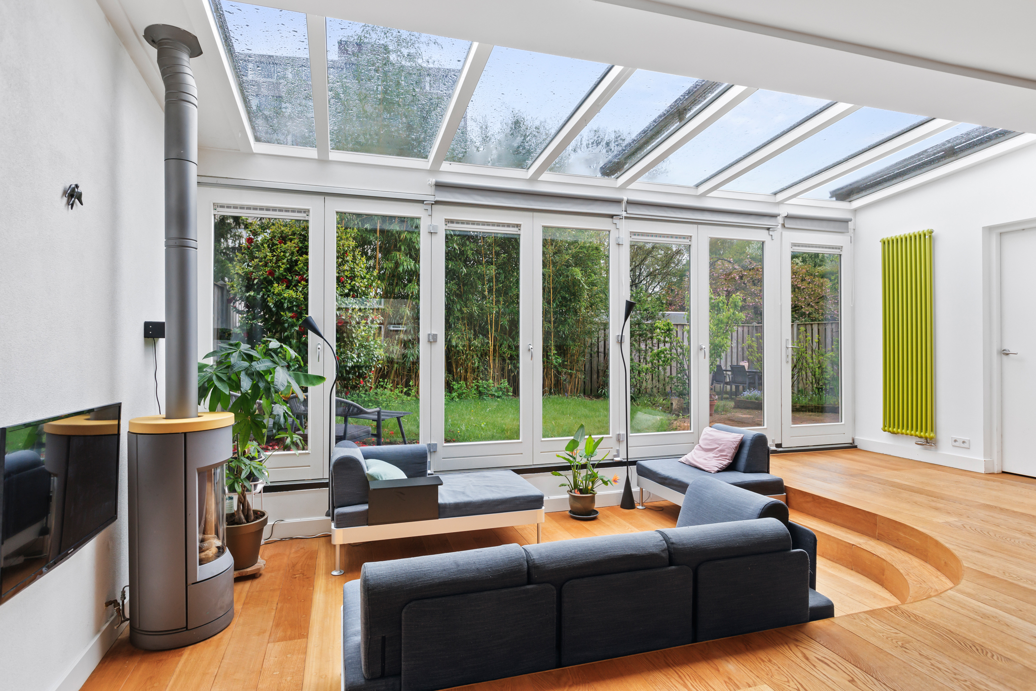 De voormalige garage is verbouwd tot een strakke, multifunctionele ruimte met veel lichtinval. Deze extra benedenkamer biedt volop mogelijkheden, denk aan een home cinema, sportruimte of een praktijk aan huis.