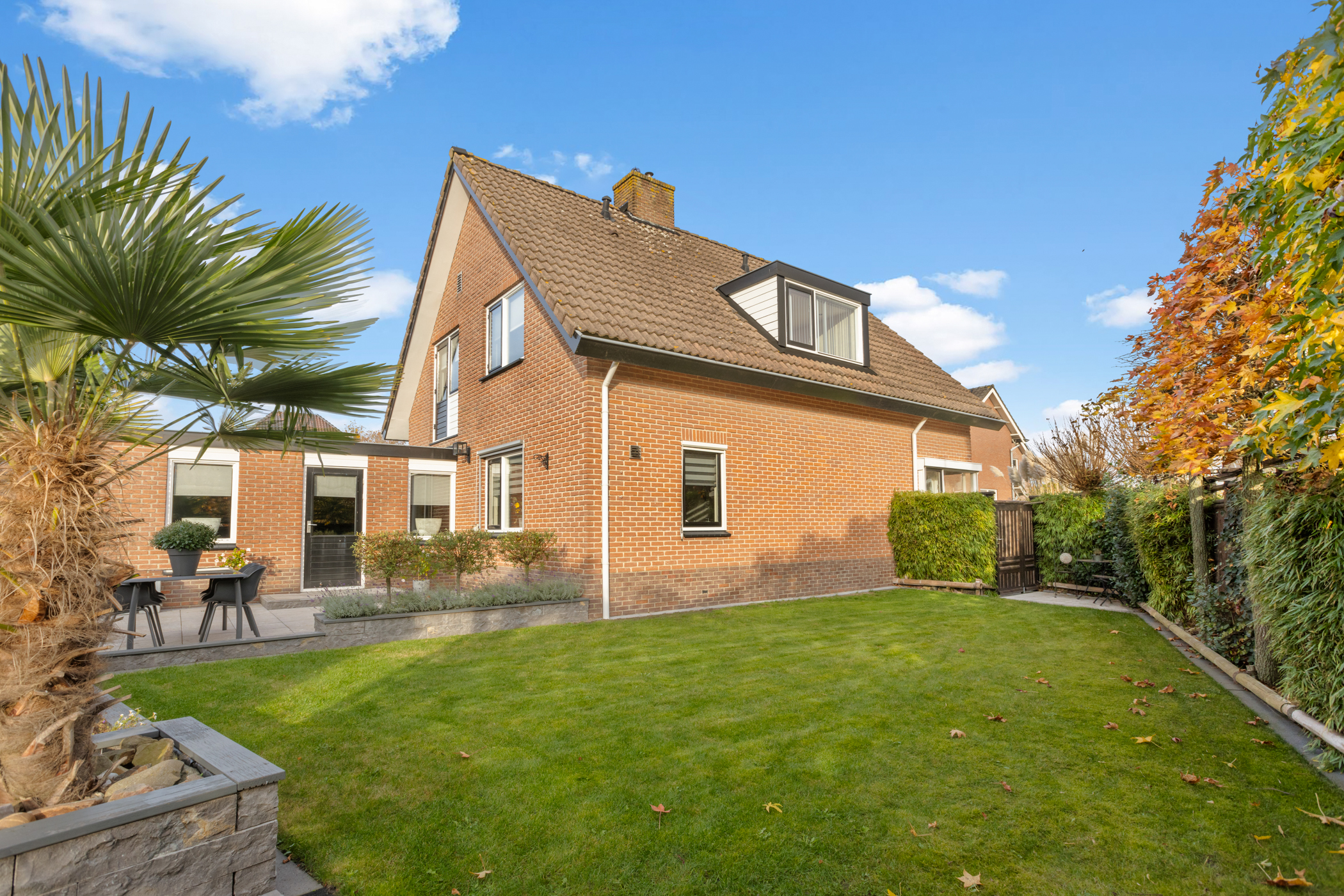 Rondom de woning ligt een verzorgde, praktisch ingedeelde tuin. Met meerdere zitjes vind je altijd wel een plek in de zon of juist in de schaduw. Kinderen kunnen heerlijk spelen in de tuin. Achterin de tuin staan twee gebouwen: rechts staat een tuinhuis, ingericht als knusse zitruimte voor lange zomeravonden. Links bevindt zich een schuur, met aan de voorkant een sfeervol zitgedeelte en aan de achterzijde een werkplaats die via de zijkant bereikbaar is. Via de poort achterin de tuin heb je bovendien een extra toegang tot het perceel.